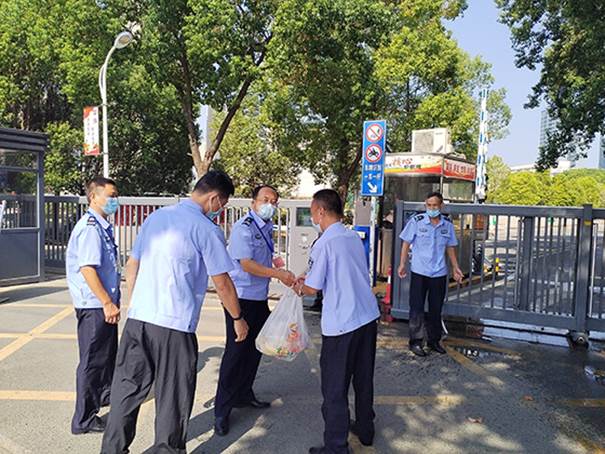 9月10日上午,中秋佳节来临之际,党委保卫部(处)长高想清、副部(处)长唐振兵、熊健等人看望慰问了节日期间坚守在工作一线执勤的安保人员。高想清对执勤人员放弃与家人的团圆、坚守岗位辛勤工作、确保广大师生能够过上一个祥和安全的团圆节表示感谢。