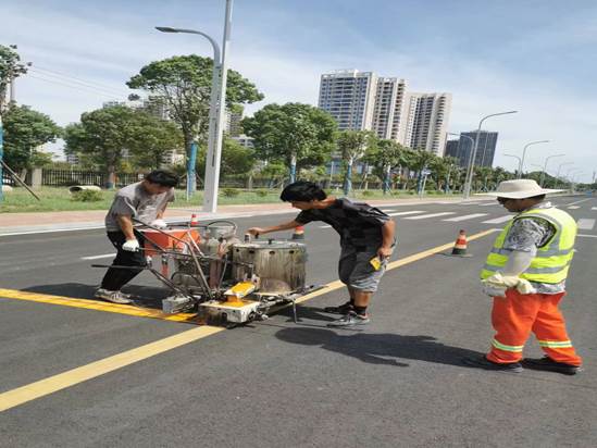 8月26日,施工队进场,保卫部工作人员在炎炎烈日下指导工人施工,监督工程质量,8月30日,20多处交通标识牌、500多平方米的热容震荡标志线顺利投入使用。