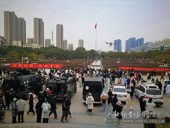 在东校区立德广场,工作人员通过悬挂宣传横幅,摆放宣传展板,现场发放《公民防范恐怖袭击手册》宣传资料等方式,向师生宣讲恐怖袭击的手段、特点、危害及防范和应对措施,教育引导师生切实增强防恐反恐意识,及时识别可疑人员和可疑行为,发现暴恐活动要迅速报警,面对恐怖袭击时要采取正确及时的措施规避危险,身处危机环境要利用掌握的安全防范知识和自救技能保护自身安全。活动现场,公安民警还进行了处突车、狙击枪、排爆机器人、侦察无人机等警用装备展示,引起师生强烈反响。
