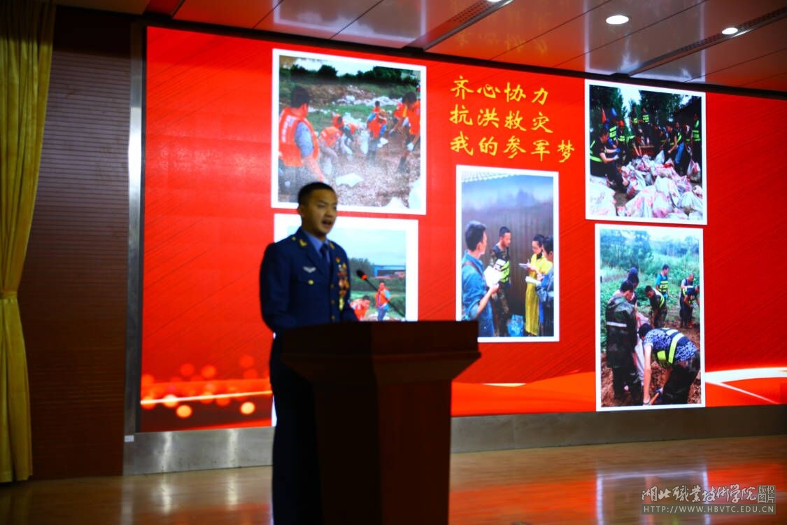 宣讲会上,观看了征兵宣传片和擒敌拳表演。学校3名退役复学大学生代表借助图文并茂的PPT课件,从不同角度分享了自己携笔从戎的经历,畅谈军旅的收获与体会,引起与会大学生的强烈共鸣,激发了同学们参军报国的热情。兵役机关工作人员详细解读了大学生参军的征集条件、报名程序、优惠政策等内容,并就同学们关心的专升本、士兵提干、报考军校等问题进行了现场解答,鼓励同学们将个人理想融入国防事业,积极报名应征,在实现中国梦、强军梦中彰显人生价值。活动现场反响强烈,前来咨询政策和报名应征的同学络绎不绝。