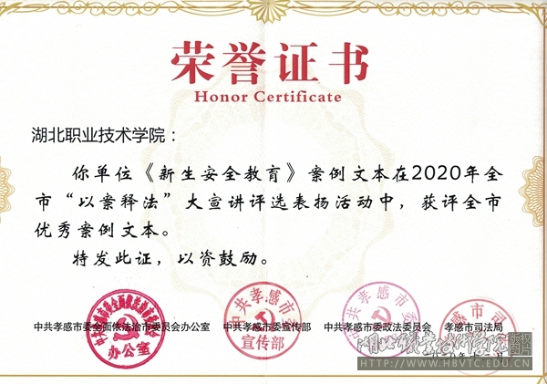 12月2日上午,孝感市2020年“宪法宣传周”启动仪式在市公安局一楼多功能会议厅举行,会上宣读了《关于全市“以案释法”大宣讲优秀宣讲员、优秀案例文本、优秀“三微”作品的通报》,并为获奖者颁发了荣誉证书、奖品。学校推荐报送的《新生安全教育》获评优秀案例文本奖,成为获此殊荣的唯一学校代表。