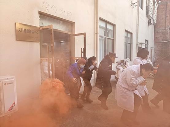 随后进行的火场逃生演练模拟了培训会场一角突发“火情”。随着模拟烟雾升起,警报响起,参训医护人员迅速反应,在工作人员指引下,严格遵循“弯腰低姿、捂住口鼻”的逃生要领,沿着预定疏散路线,有序、快速地撤离至室外安全集结区域,整个过程紧张有序,达到了演练预期效果。