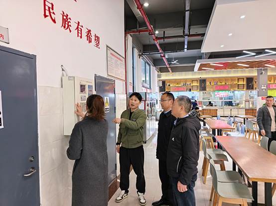随后,检查组一行深入南苑食堂,重点查看了后厨操作间、消防设施设备及火灾自动报警系统的运行状况。检查组仔细检查了室内消火栓箱的配件是否齐全、灭火器材是否有效等,并现场测试了部分消防器材的完好性,要求食堂管理方务必严格落实消防安全主体责任,加强日常巡查和员工培训,确保食品安全与消防安全万无一失。